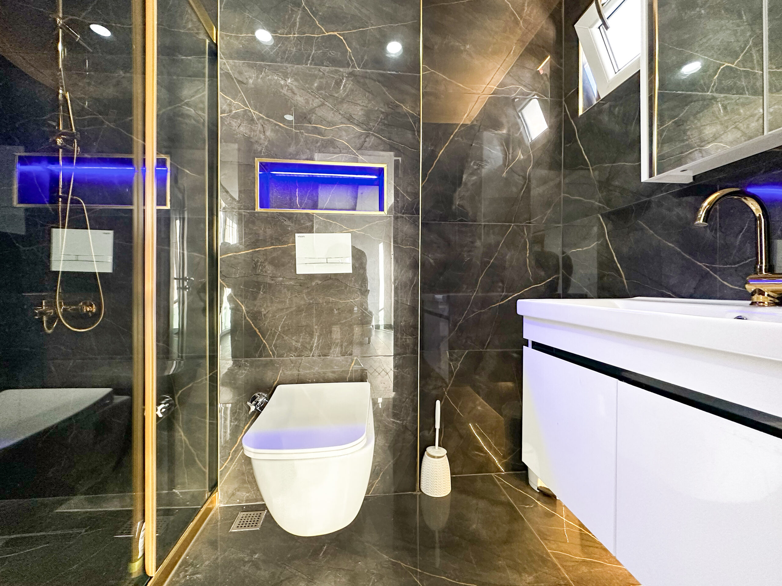 -Her odada klima ve banyo